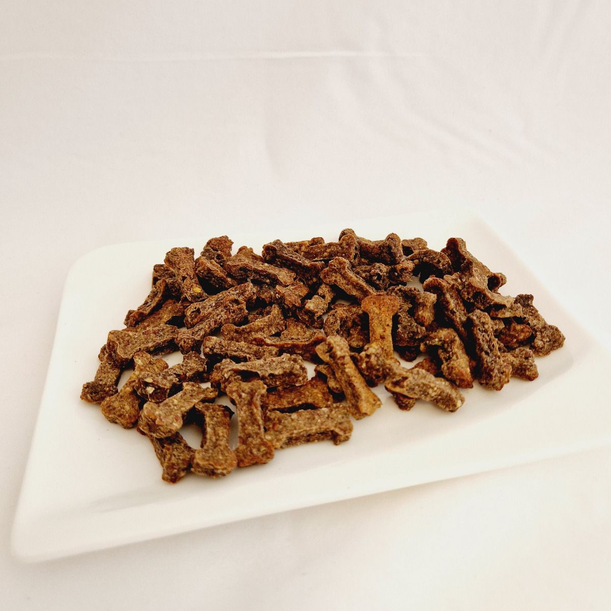 Sestava: goveja jetra 30%, bučke, jabolka, chia semena, laneno seme, repično olje, ajdova moka.