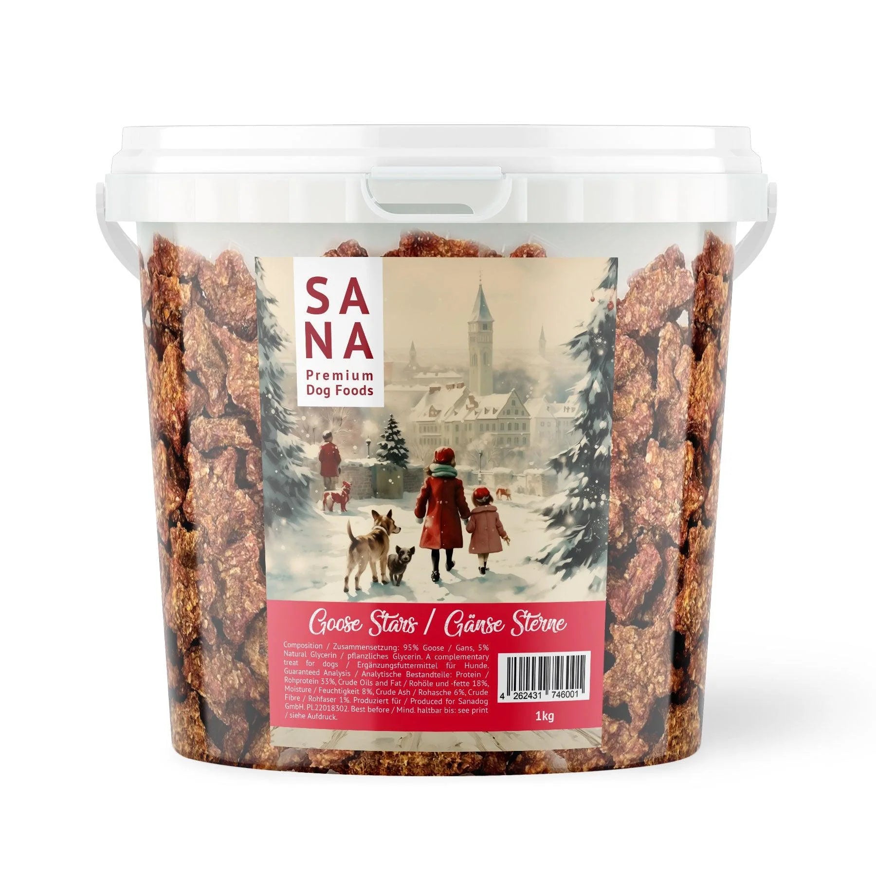 SANADOG Gosje zvezdice – Praznična poslastica za vašega štirinožnega prijatelja v mirnem božičnem času! Naše gosje zvezdice so narejene iz čistega, visokokakovostnega gosjega mesa in ljubeče proizvedene v naši lastni manufakturi.