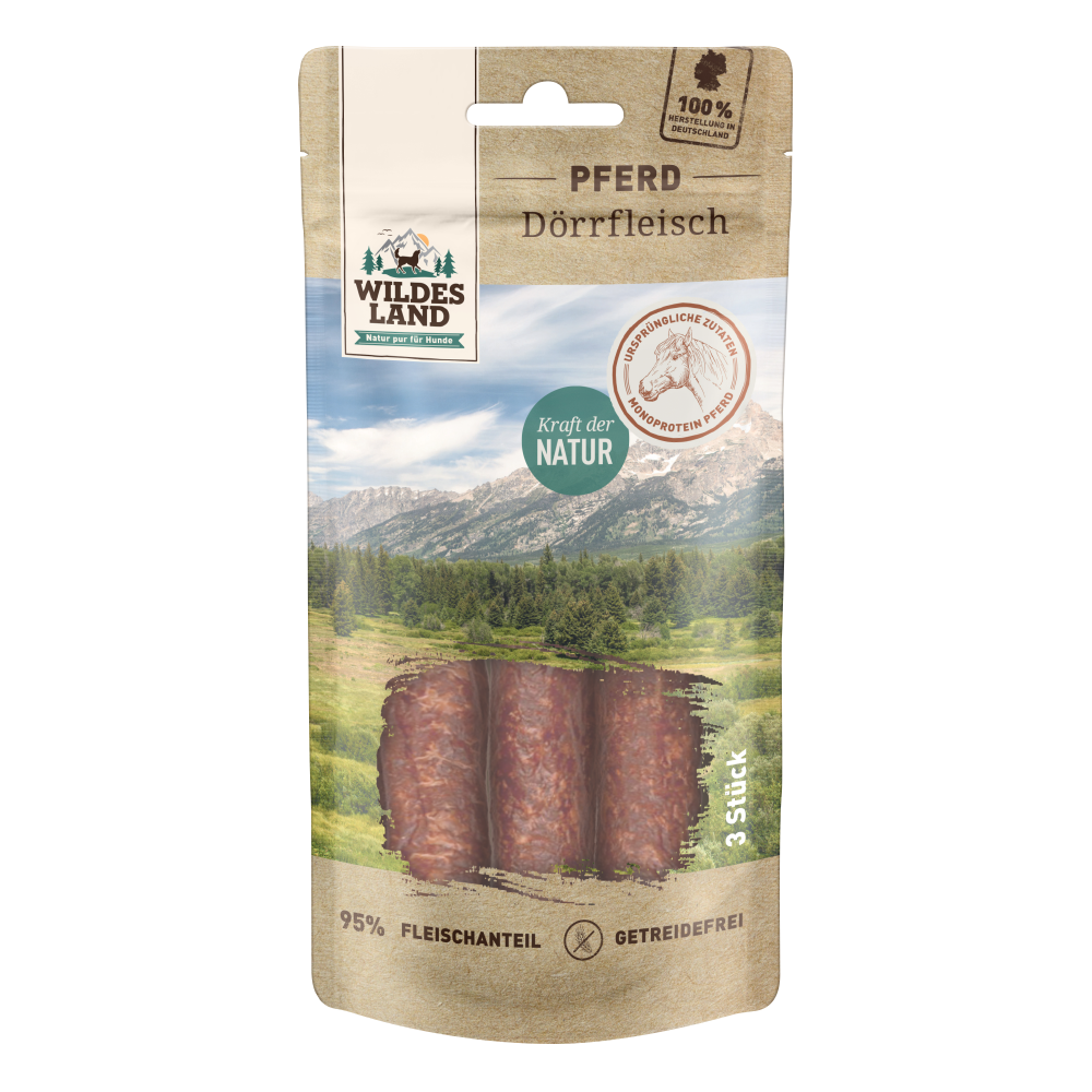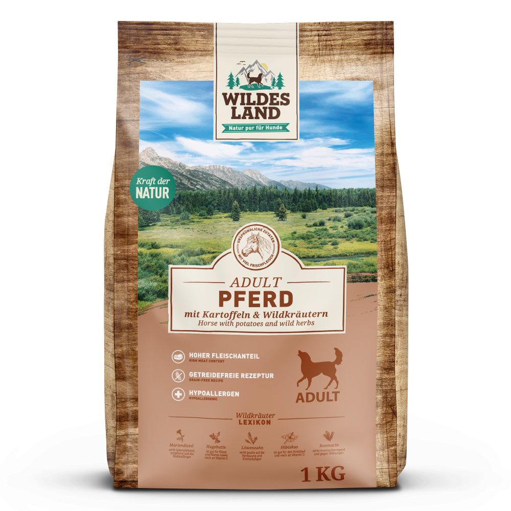 Potem je Wildes Land Horse Trial Pack prava izbira! Kot edini vir živalskih beljakovin (monoprotein) velja konjska hrana za posebej hipoalergeno in idealno za pse z alergijami ali intolerancami.